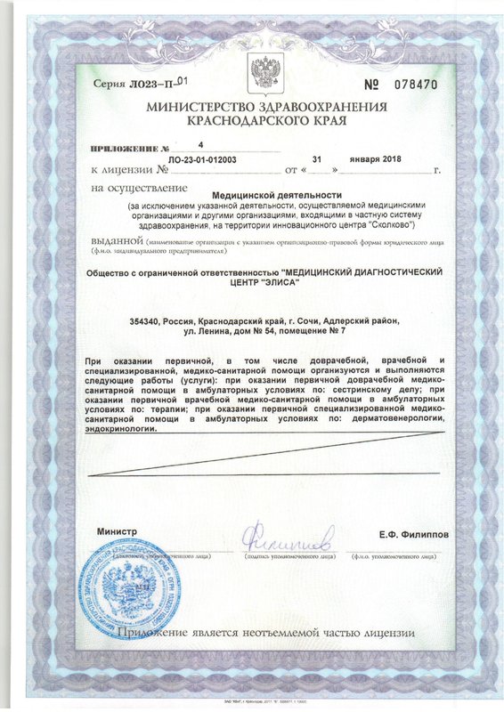 Едва ли можно в полной мере представить себе роль медицины в жизни общества. На протяжении всей жизни человек находится под неустанным надзором медицинского персонала клиник, больниц и медицинских центров, в которые он приходит со своей проблемой. Медицинский диагностический центр Элиса не только помогает восстановить организм, но и проводит профилактические мероприятия по сохранению здоровья на долгое время. Персонал медицинского диагностического центра Элиса оказывает услуги в сфере аллергологии, иммунологии, дерматологии, гинекологии, акушерства, педиатрии.